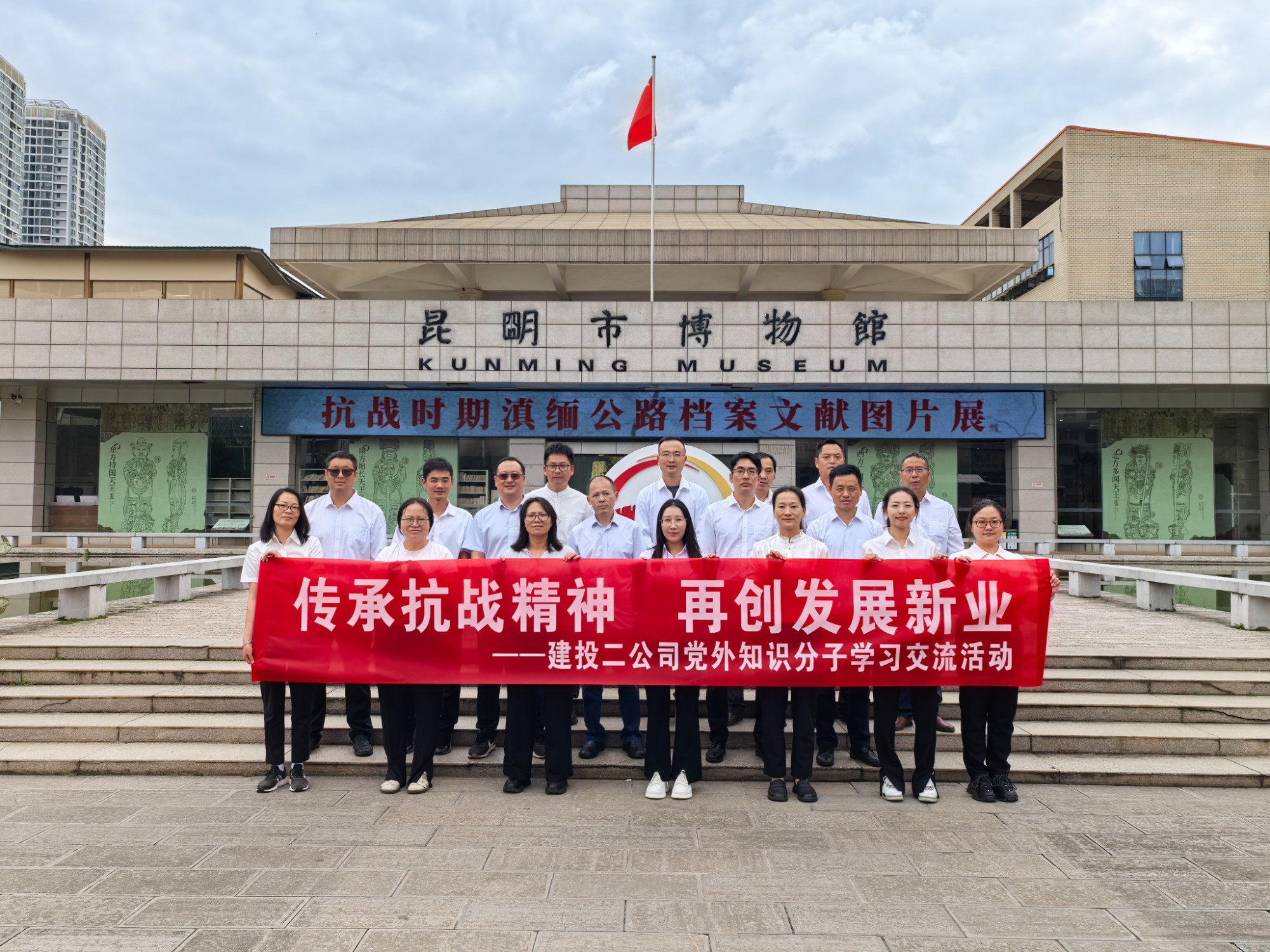 為弘揚(yáng)偉大抗戰(zhàn)精神,賡續(xù)紅色血脈,9月23日下午,公司黨委聯(lián)合團(tuán)委組織22名黨外知識分子、青年職工代表赴昆明市博物館參觀“血肉筑就抗戰(zhàn)生命線——抗戰(zhàn)時期滇緬公路檔案文獻(xiàn)圖片展”,并圍繞“傳承抗戰(zhàn)精神,再創(chuàng)發(fā)展新業(yè)”開展交流研討。